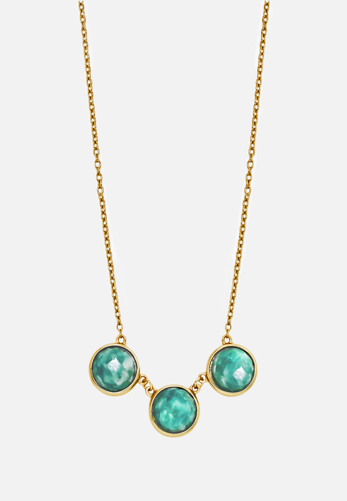 Wear the amazonite stone where it's traditionally meant to be worn, near the throat and heart to utilize its calming and healing powers. And since three is always better than one, our Amara stone necklace is sure to bring you 3x the energy of its stones. With an adjustable chain, you can add this into your favorite stack or wear alone as a statement piece.