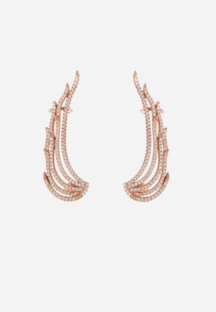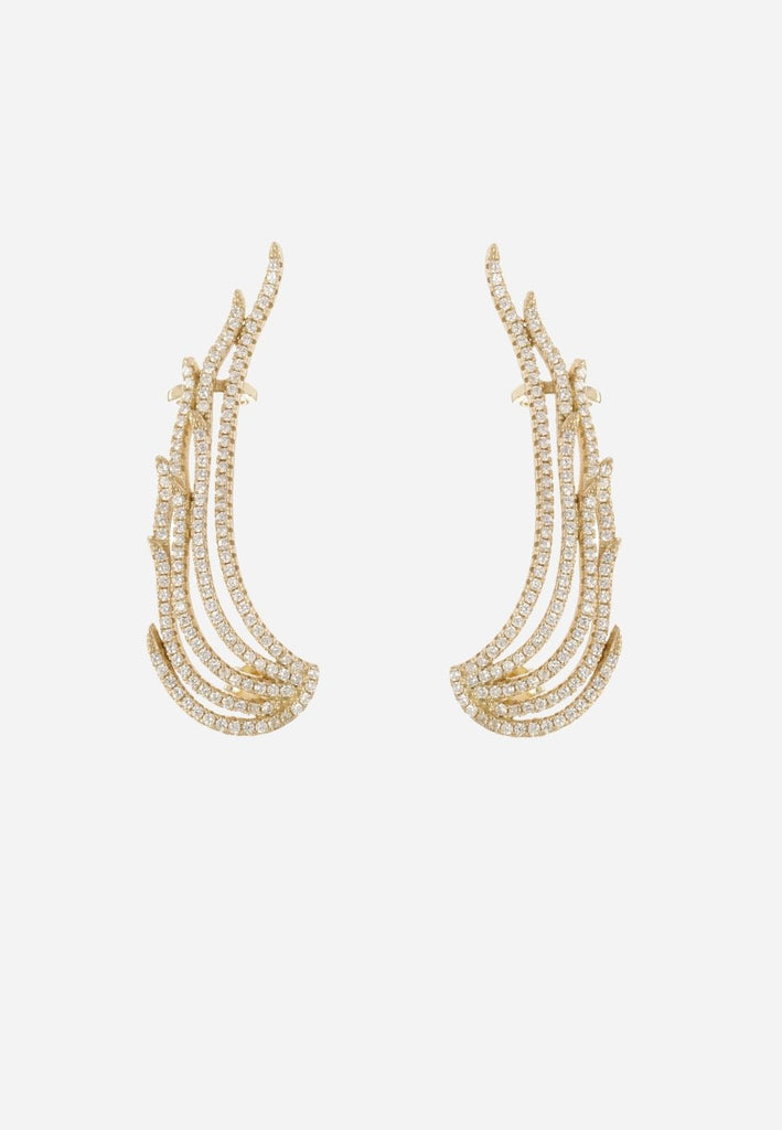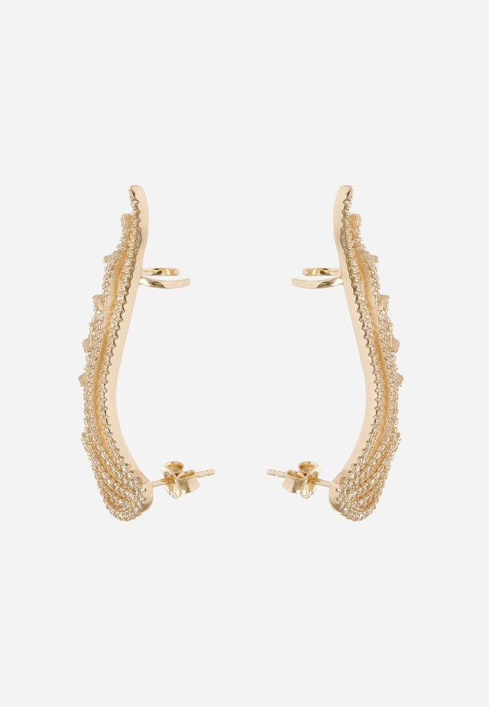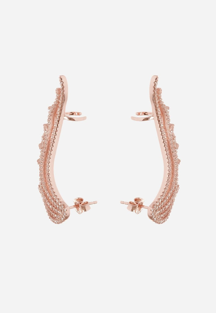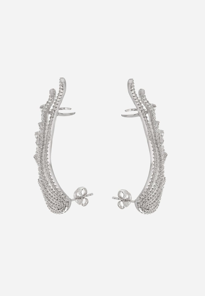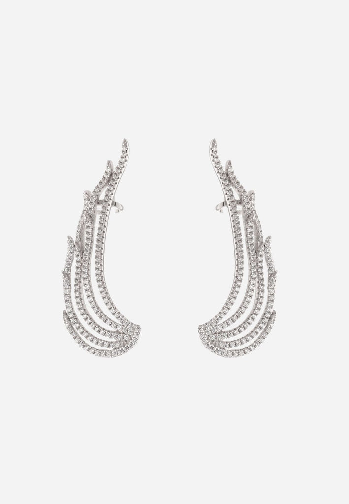 Levitate towards the sky with our sparkly wing earrings. Studded with manmade gems, you can rest easy that your sparkle is completely conflict free. Attach to the upper part of your ear with a secure cuff. Fits most ears.