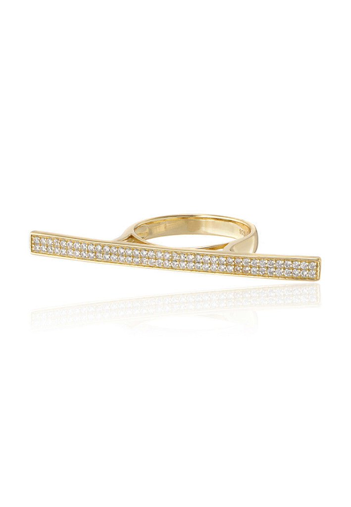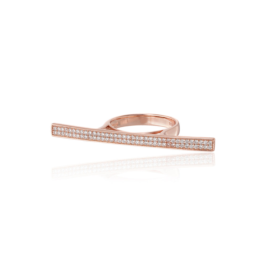 This isn't your everyday bar ring. A linear design that's been bedazzled with lab diamonds, the bar seamlessly grazes over your surrounding fingers, preparing you for a glitter battle. Pair with your favorite normcore outfit to stay en pointe.