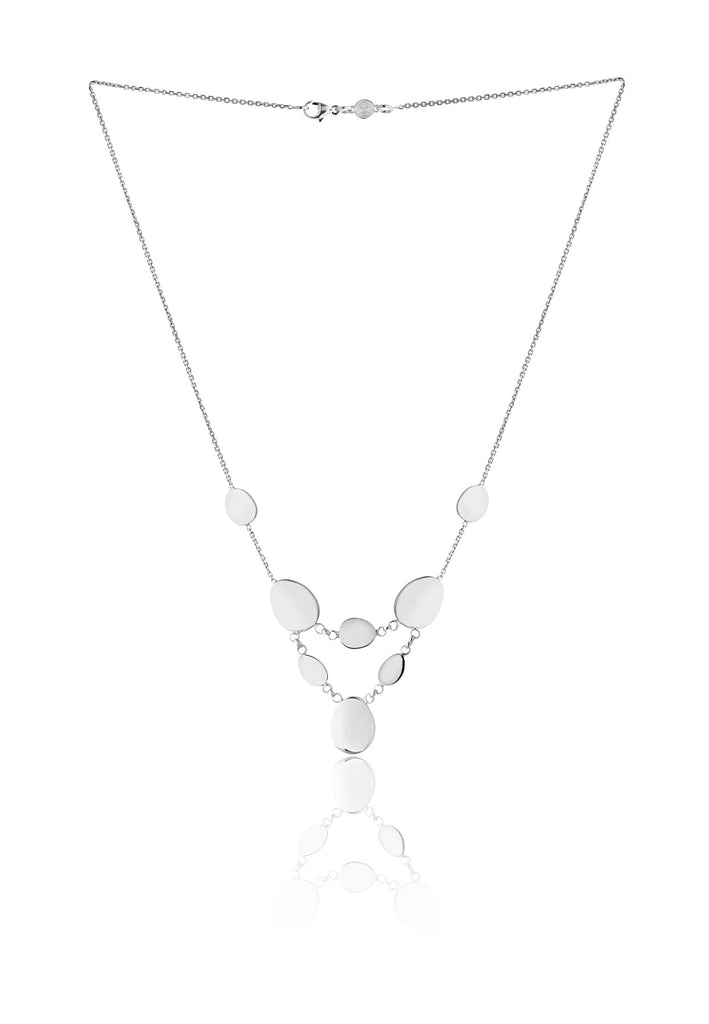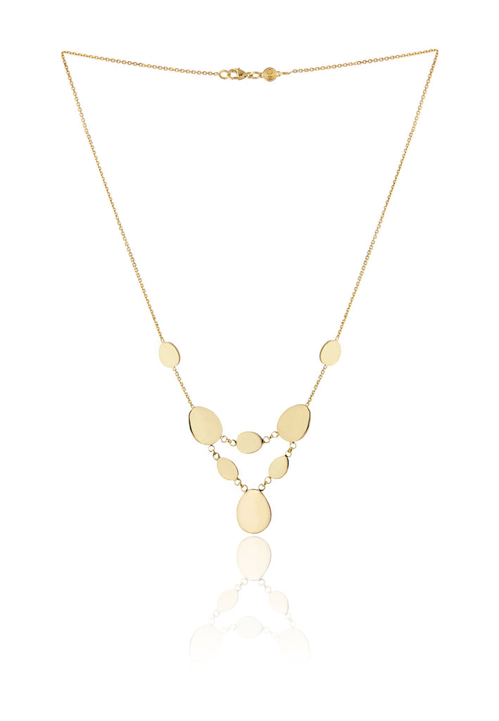 Classically designed in Italy, our Elena collection is polished and refined for fancy occasions. Each pebble is double-sided, which means it will be just as pretty when the stones flip over. This necklace in particular features a double layer of stones, showing off all of the organic shapes.