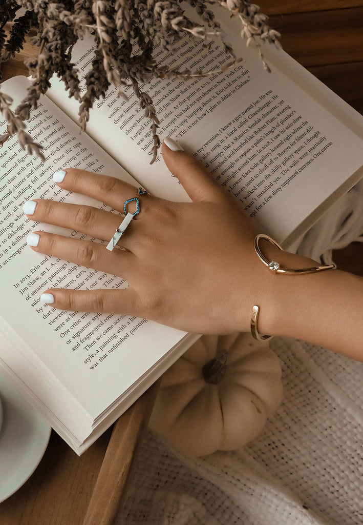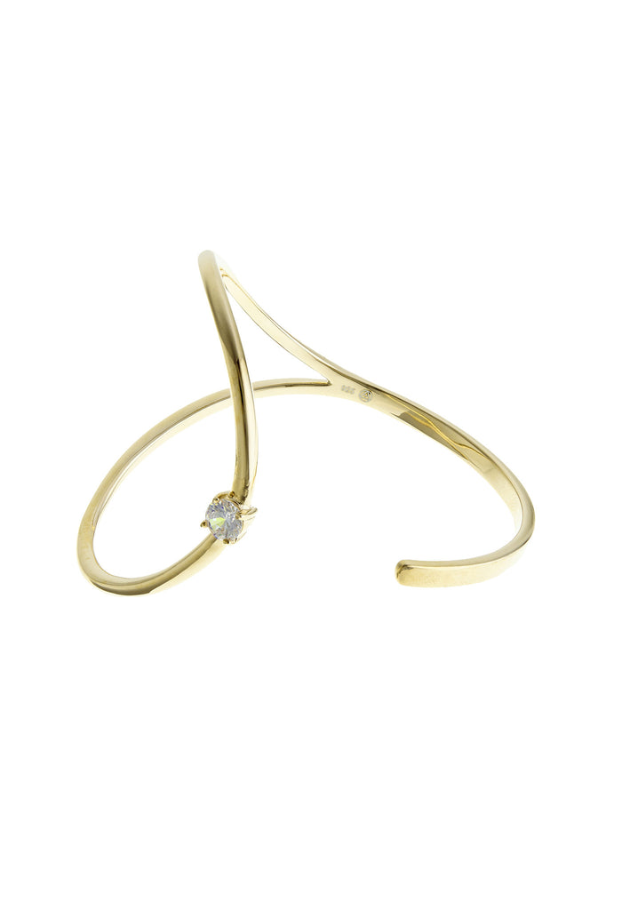 Wrapped and curved, this bracelet's got a mind of its own. A single cubic zirconia punctuates the swooping design, and despite its size, it's surprisingly lightweight to wear. We love Miss Evie, she's a doll.