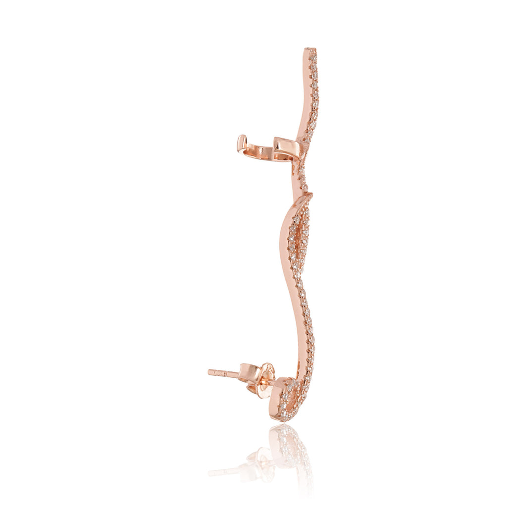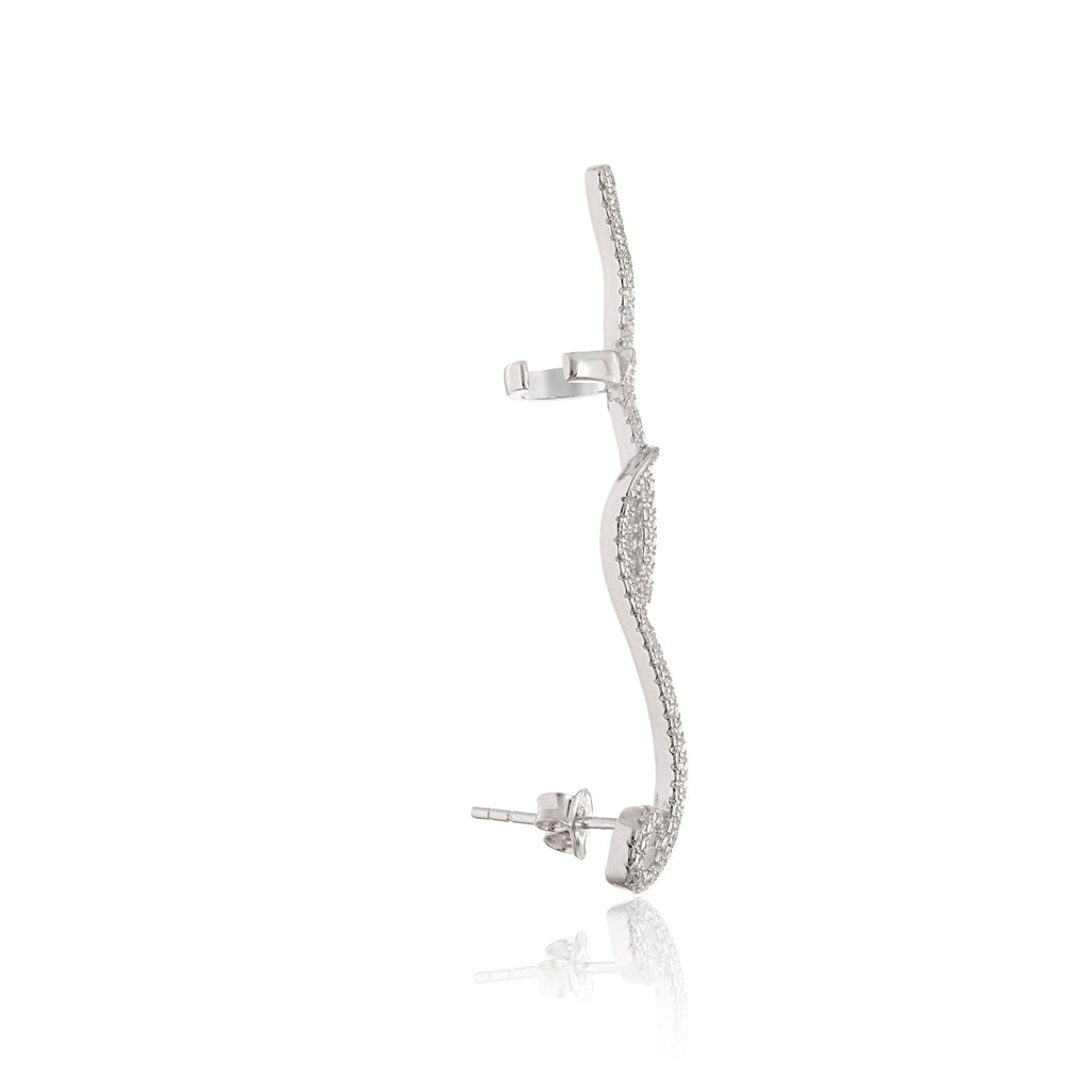 .925 sterling silver. For plated items, all items are sterling silver with gold vermeil or rose gold plating. Price is for one earring, for left ear only. Adjusts to fit most ears.