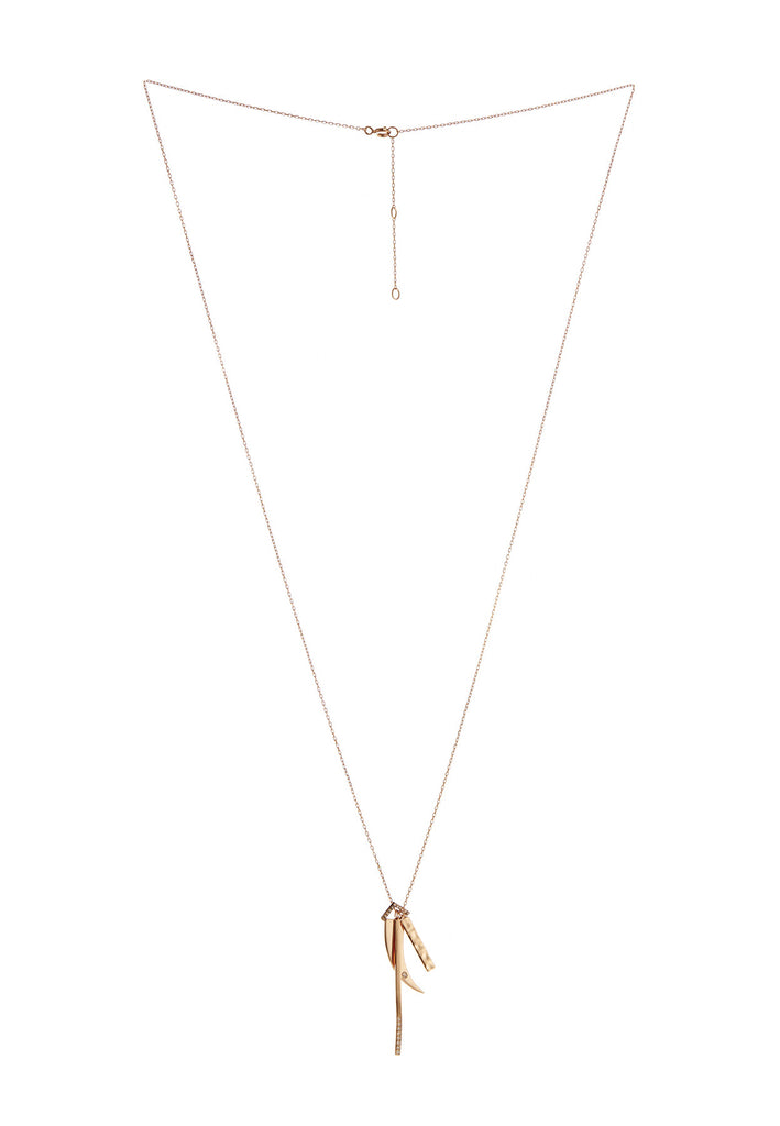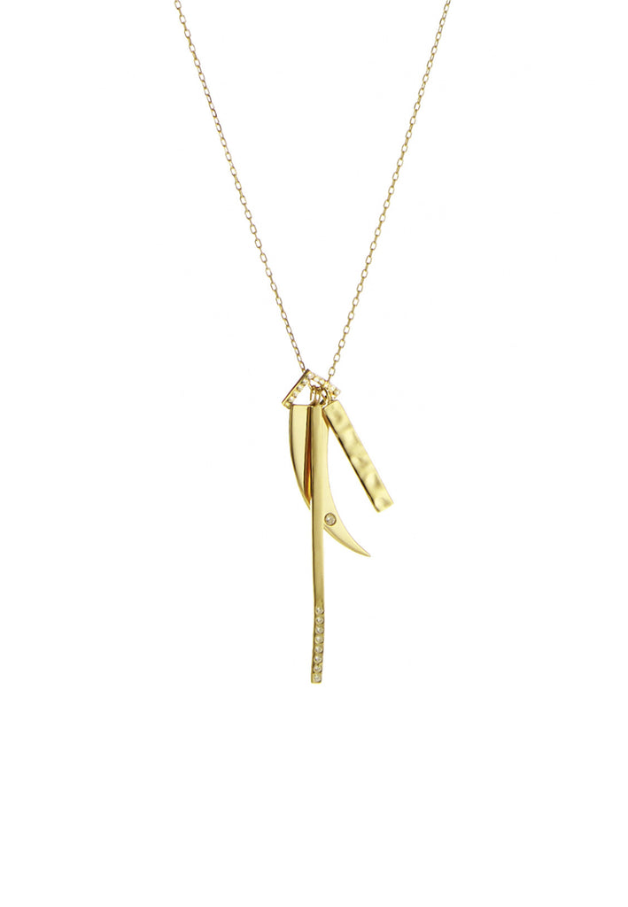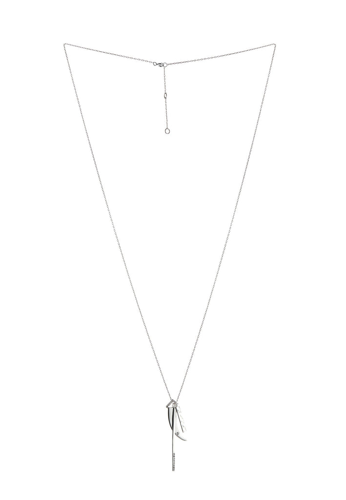 Just because you're enjoying a festival weekend, doesn't mean you have to give up your sense of sophistication. This long charm necklace has bohemian inspiration with plenty of sparkle. Four charms — a long bar with cubic zirconias, a textured bar, a square crystal-studded link, and a horn shape — hang on a delicate length of chain.