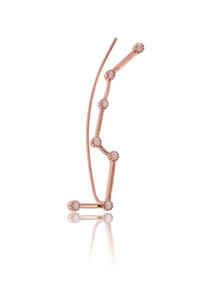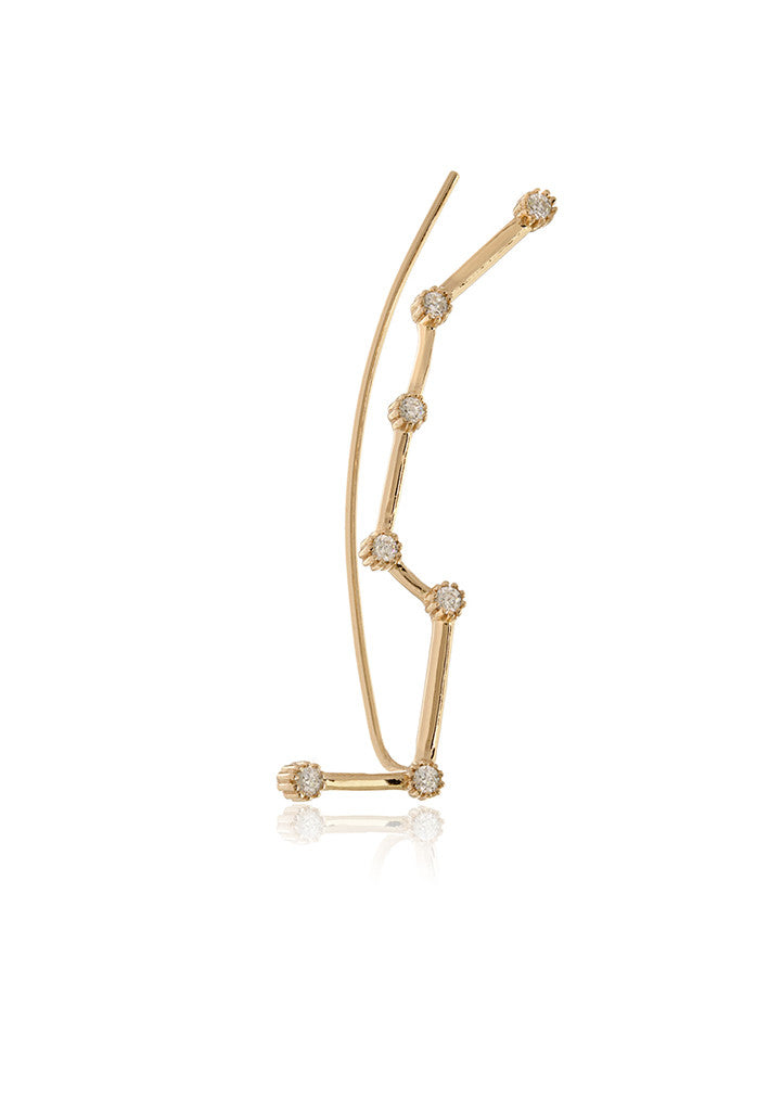 Inspired by the Ursa Minor constellation, the Polaris ear crawler decorates your ear from top to bottom. Slip in the curved bar like a regular post earring and gently close the bar to hold it in place. It's a very gravity-defying look.