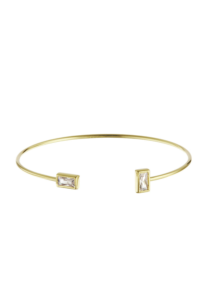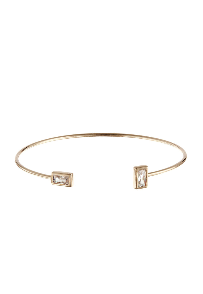 Finished with faceted stones, this lightweight cuff bracelet is one of our favorites to show off in a stack. The horizontal and vertical settings add asymmetrical flair, and the rectangular gems pair perfectly with a baguette ring or other geometric shapes.
