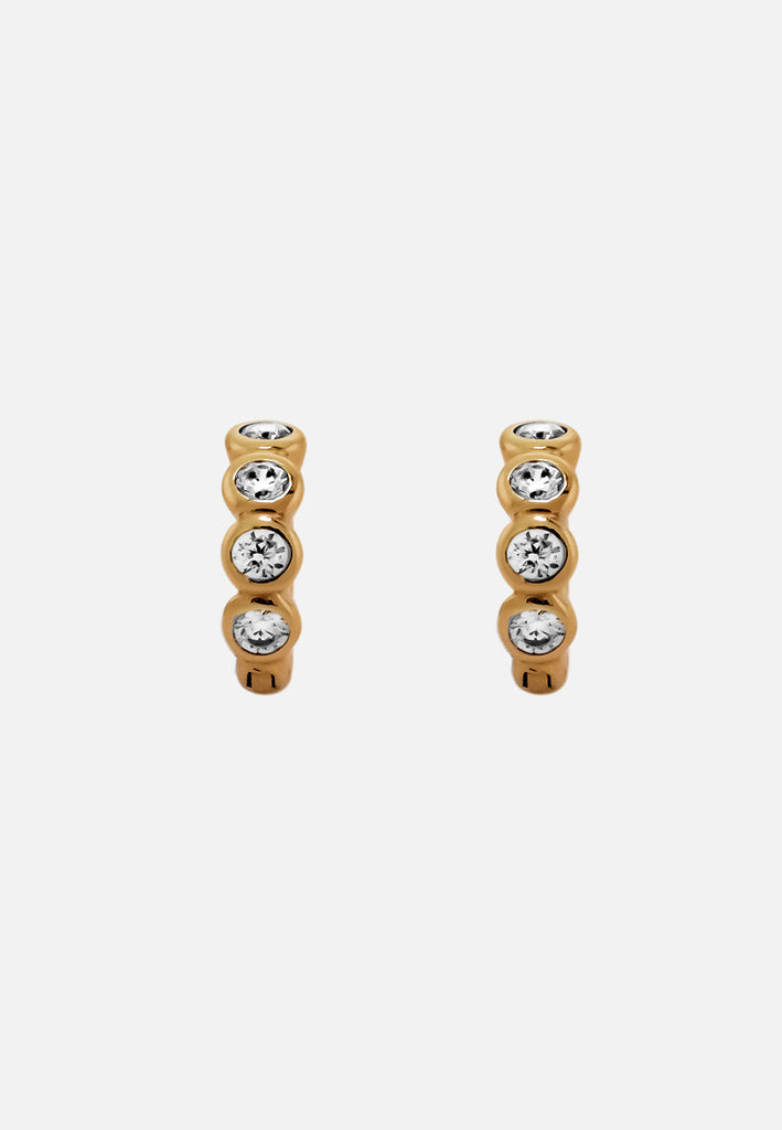 Need an earring that doesn't catch on your mask? Meet Sophie, our favorite huggie hoop earring. Made for comfort and studded for the maximum effect, these cubic zirconia studded hoops are sure to be your everyday. Perfect to wear on your first, second, third, or top hole!