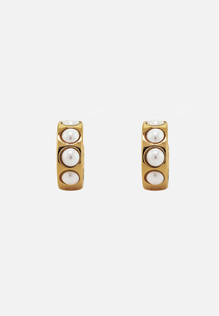 Need an earring that doesn't catch on your mask? Meet Sophie, our favorite huggie hoop earring. Made for comfort and studded for the maximum effect, these white pearl studded hoops are sure to be your everyday. Perfect to wear on your first, second, third, or top hole!